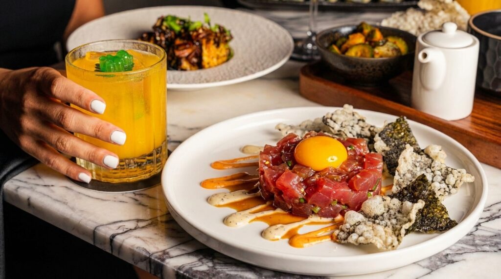 Your eyes land on a plate of bluefin tuna tartare that looks like edible art. This isn’t just dinner—it’s an experience that makes your taste buds do backflips.